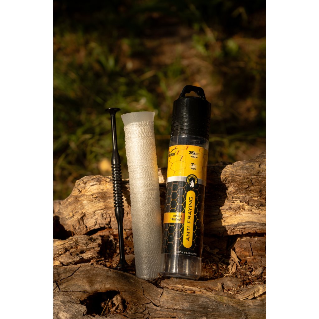 DutchCarpMesh 35 mm – 7 m je prémiová, extra široká PVA punčocha vytvořená v Holandsku. Tento rozměr je ideální pro rybáře, kteří chtějí připravit opravdu velké, atraktivní a výživné PVA patrony s vysokým objemem náplně.