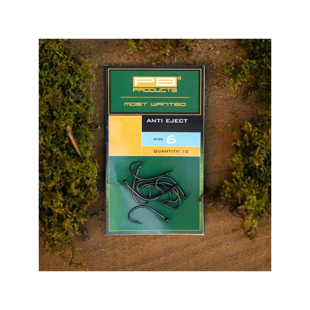 PB Products Anti Eject DBF vel. 6 je univerzální kaprařský háček navržený proti vyhazování nástrahy. Rovný ostrý hrot, kratší ramínko a drápovitý tvar zajišťují rychlé a bezpečné zaseknutí i velmi opatrných kaprů.
