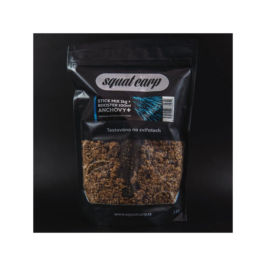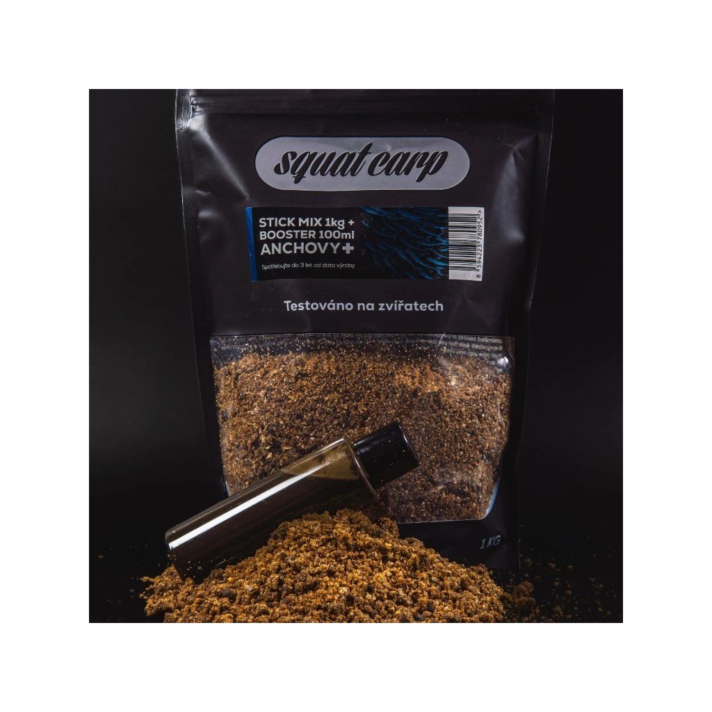 SQUAT CARP - Stick mix Anchovy+ 1kg + booster 100ml Doslova našlapané těmi nejlepšími možnými složkami
